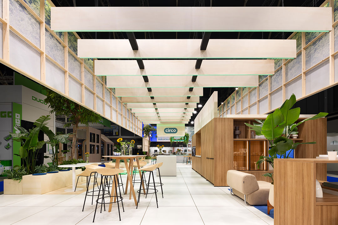 - A partially enclosed design for structure and focused visitor interaction—immersing visitors in the Bruynzeel experience without distractions.