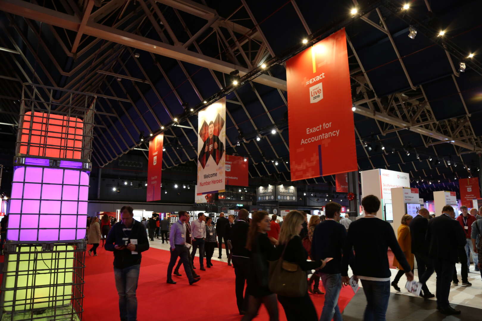 For Exact Live, we transformed the entire exhibition hall into a multimedia experience with various booths as part of it. An impressive entrance with huge screens on either side and a plenary hall for up to 5,000 visitors completed the whole setup. And did we mention that we realized the entire trade show floor on-site within 24 hours? That's right!