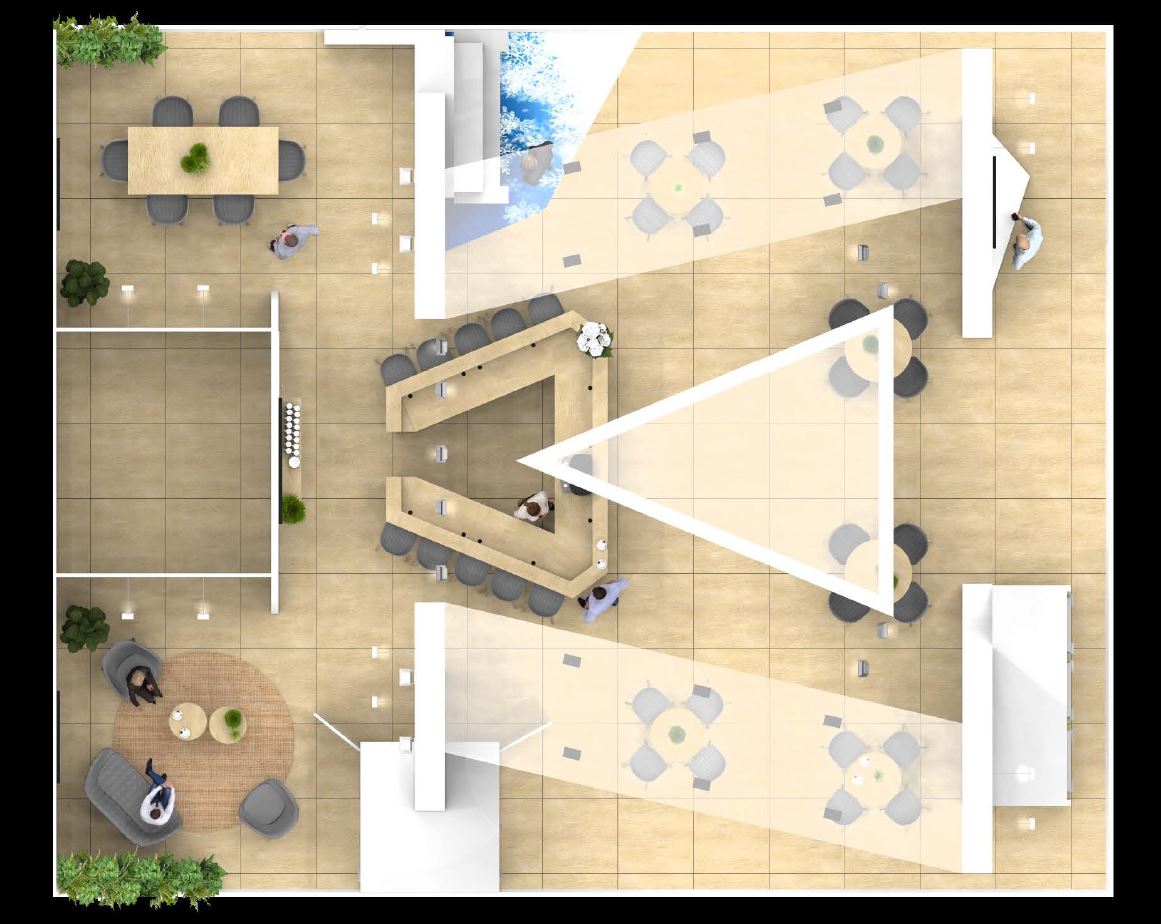 With a height of five meters, the KOMA stand had an impressive presence on the exhibition floor. The tall pillars, serving as impressive focal points, were not only functional but also artistically integrated with KOMA's distinctive logo. To complete the look, a hanging green triangle floated prominently above the stand.