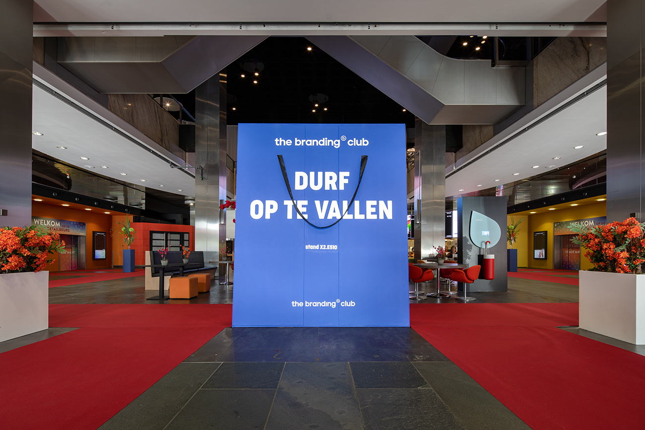 In de welkomsthal van de Trade Mart hebben wij een indrukwekkende tas van 3 meter hoog geplaatst als opvallende eyecatcher. Deze gigantische tas fungeert als een uitnodigend element om de aandacht van bezoekers te trekken en hen naar de stand van The Branding Club te leiden. Wat dit item uniek maakt, is dat bezoekers door de tas heen kunnen lopen.